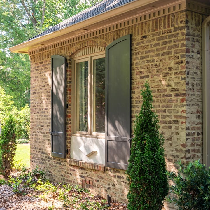 - Design Tip: Paneled shutters pair beautifully with brick, stone, or stucco exteriors, especially on symmetrical facades.Â