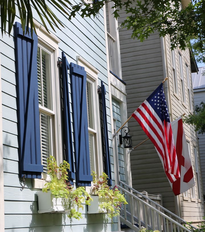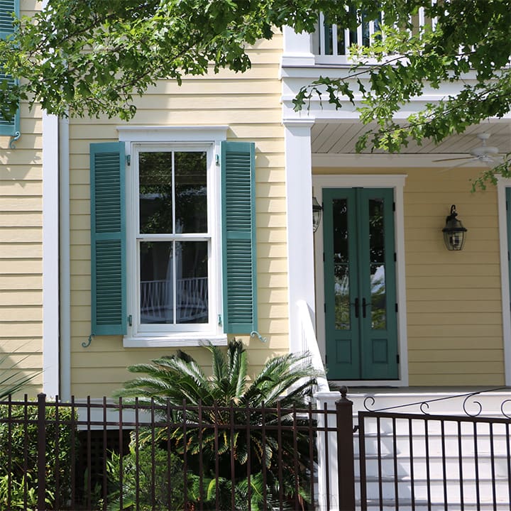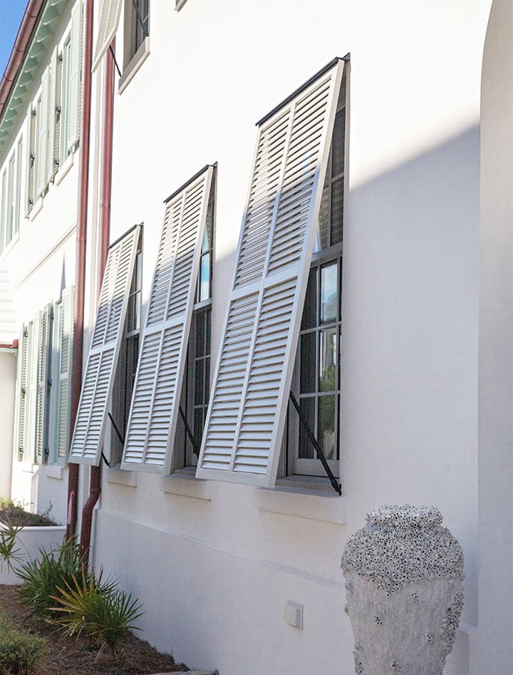 Bahama shutters are top-hinged and prop open at an angle, providing sun protection and a relaxed coastal look. Originally developed for tropical climates, they’ve become a favorite for coastal homes of all styles.Â