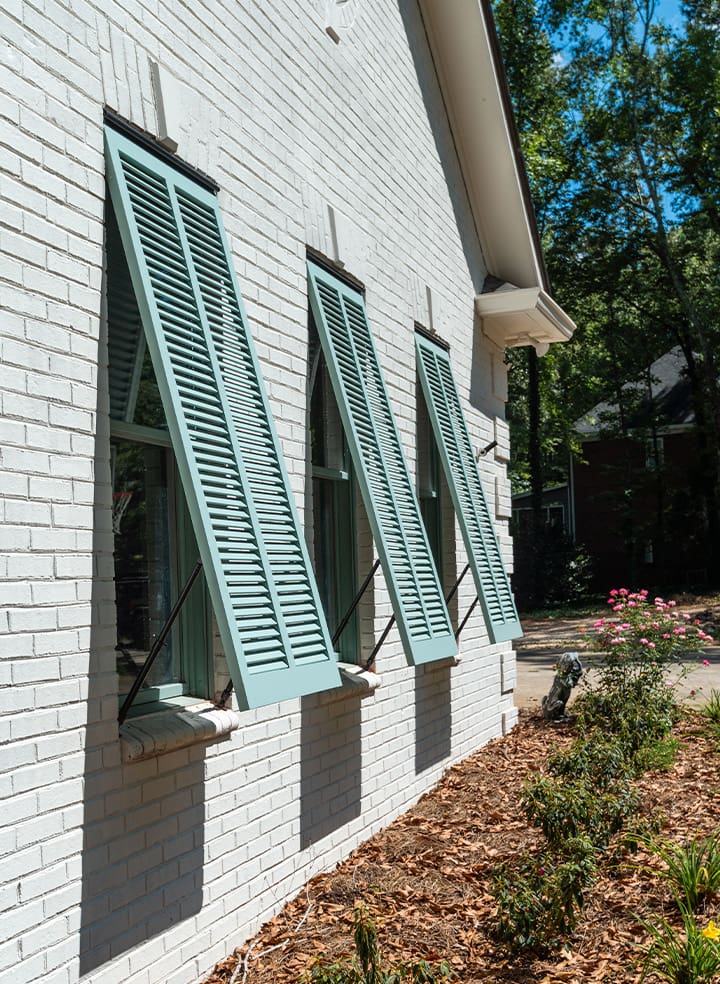 Our exterior shutters are handcrafted in Montgomery, Alabama with care, precision, and an unwavering commitment to quality. Every set is made to order using the finest materials and backed by a lifetime warranty—because great design should never be temporary.